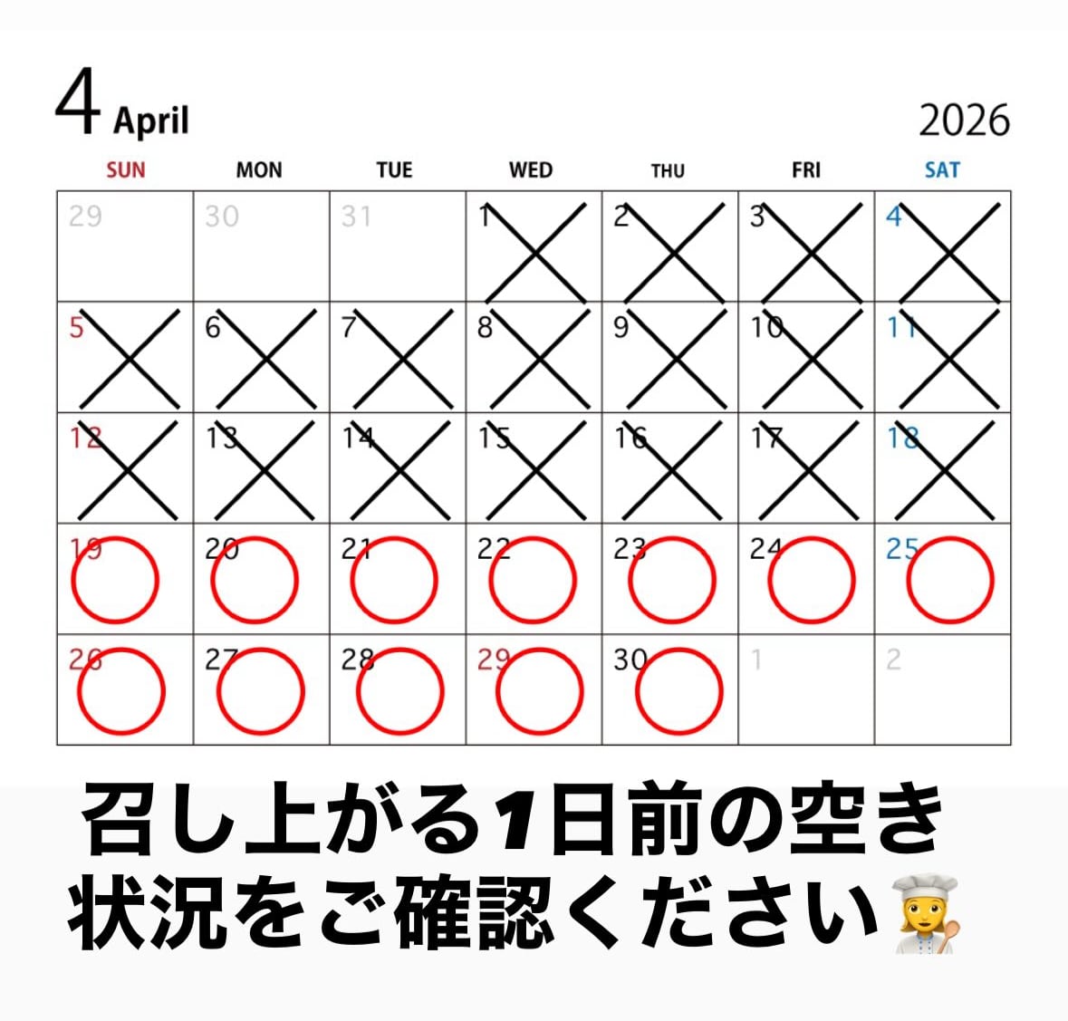 4月のご予約受付中です。